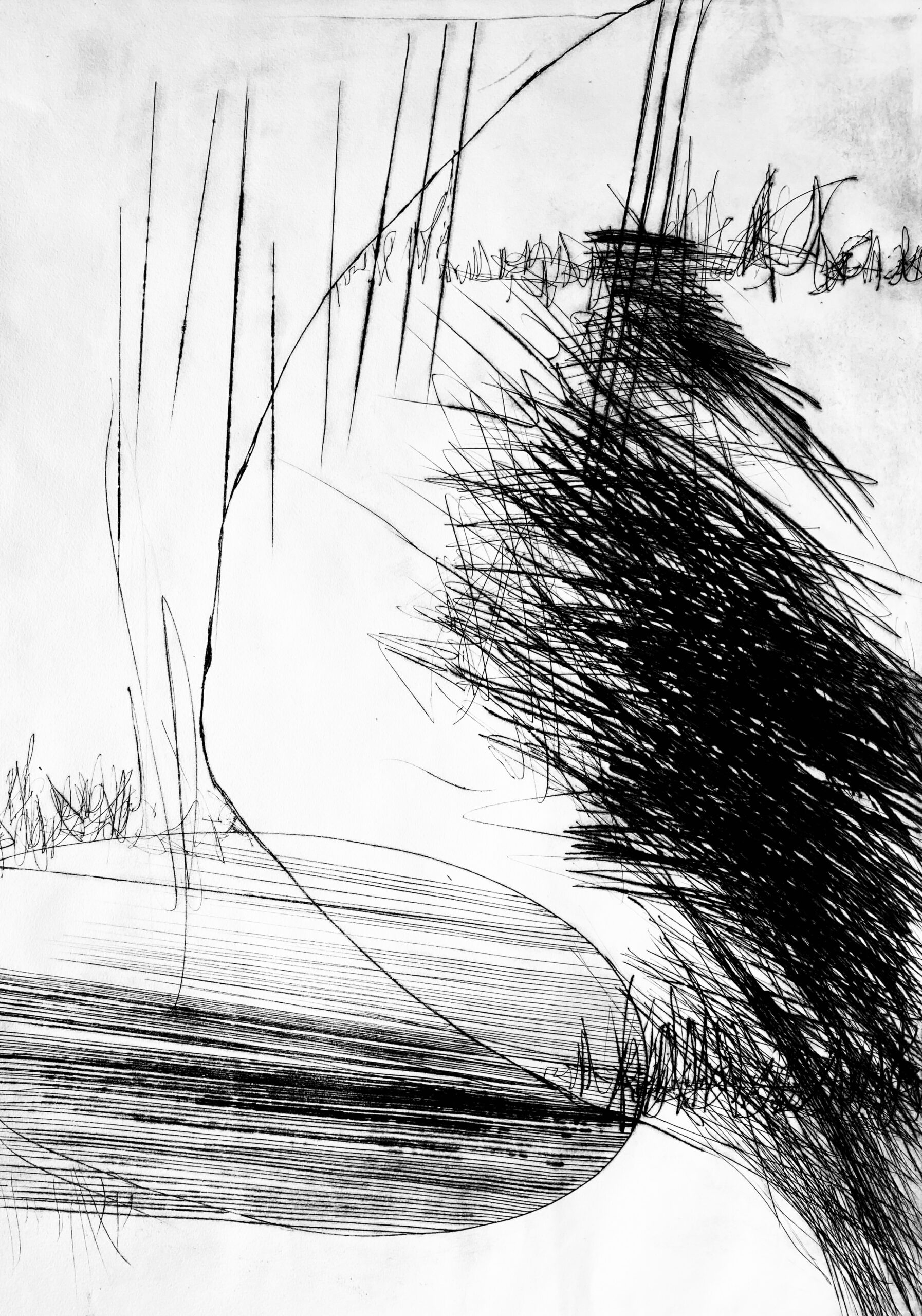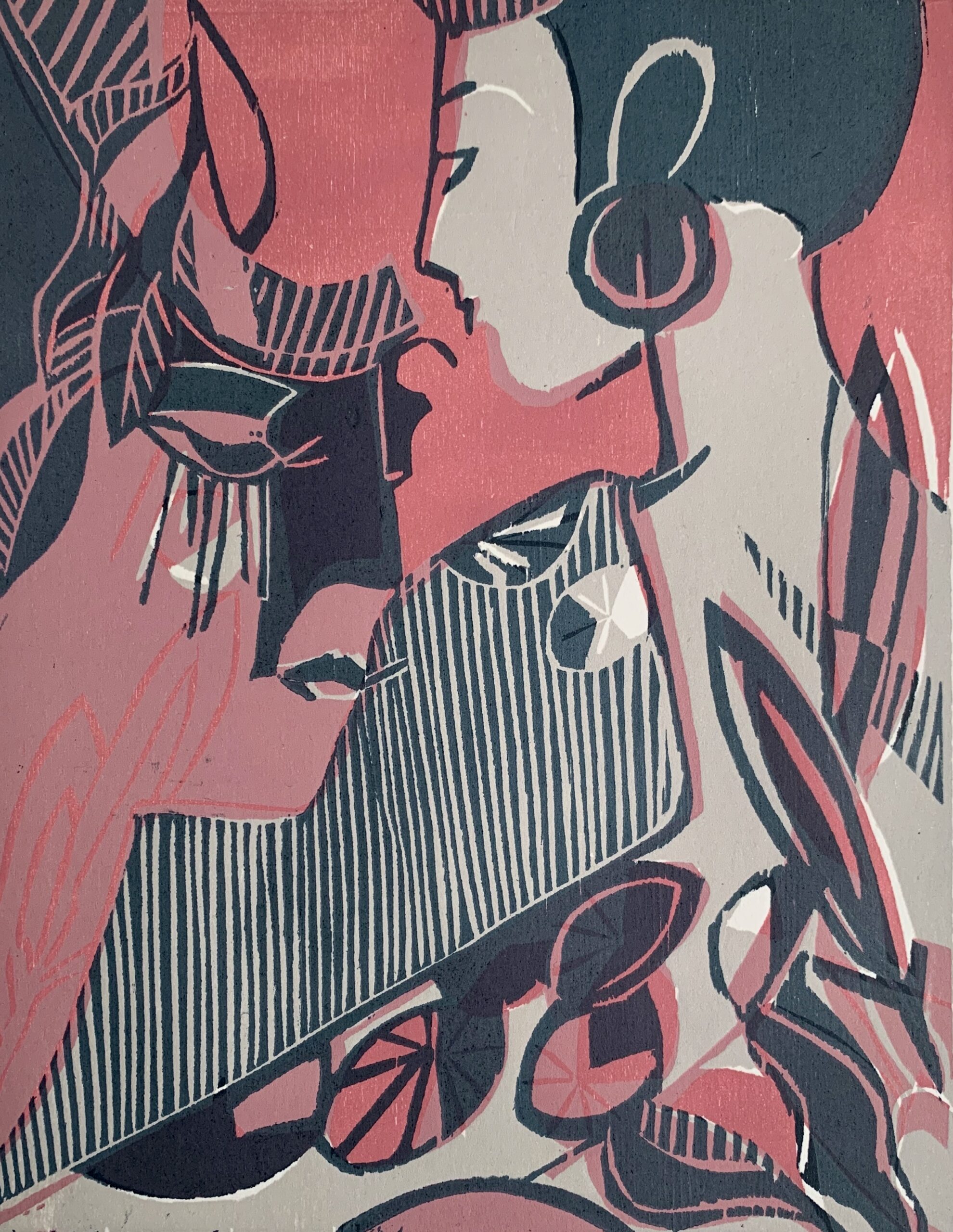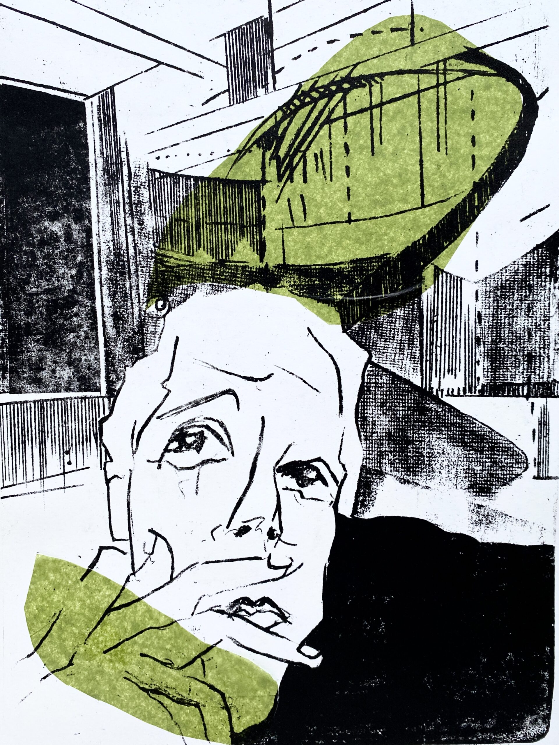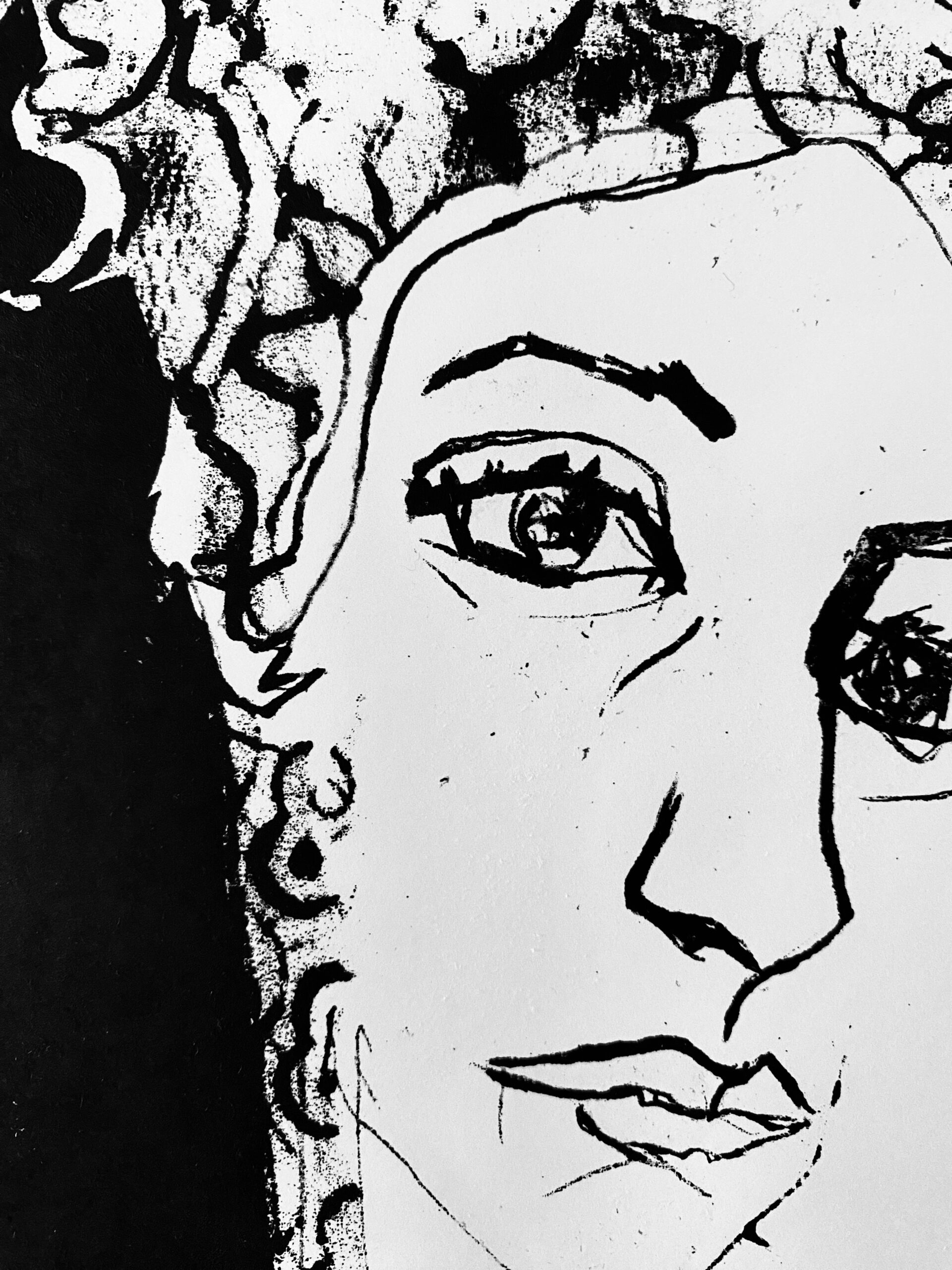 In der Druckgrafik wechseln sich kraftvolle Linien und Flächen in kontrastreichen dynamischen und erhabenen stillen Bildstellen ab. Die Technik transportiert die erzählten Geschichten der Charaktere in einer besonderen Formsprache.