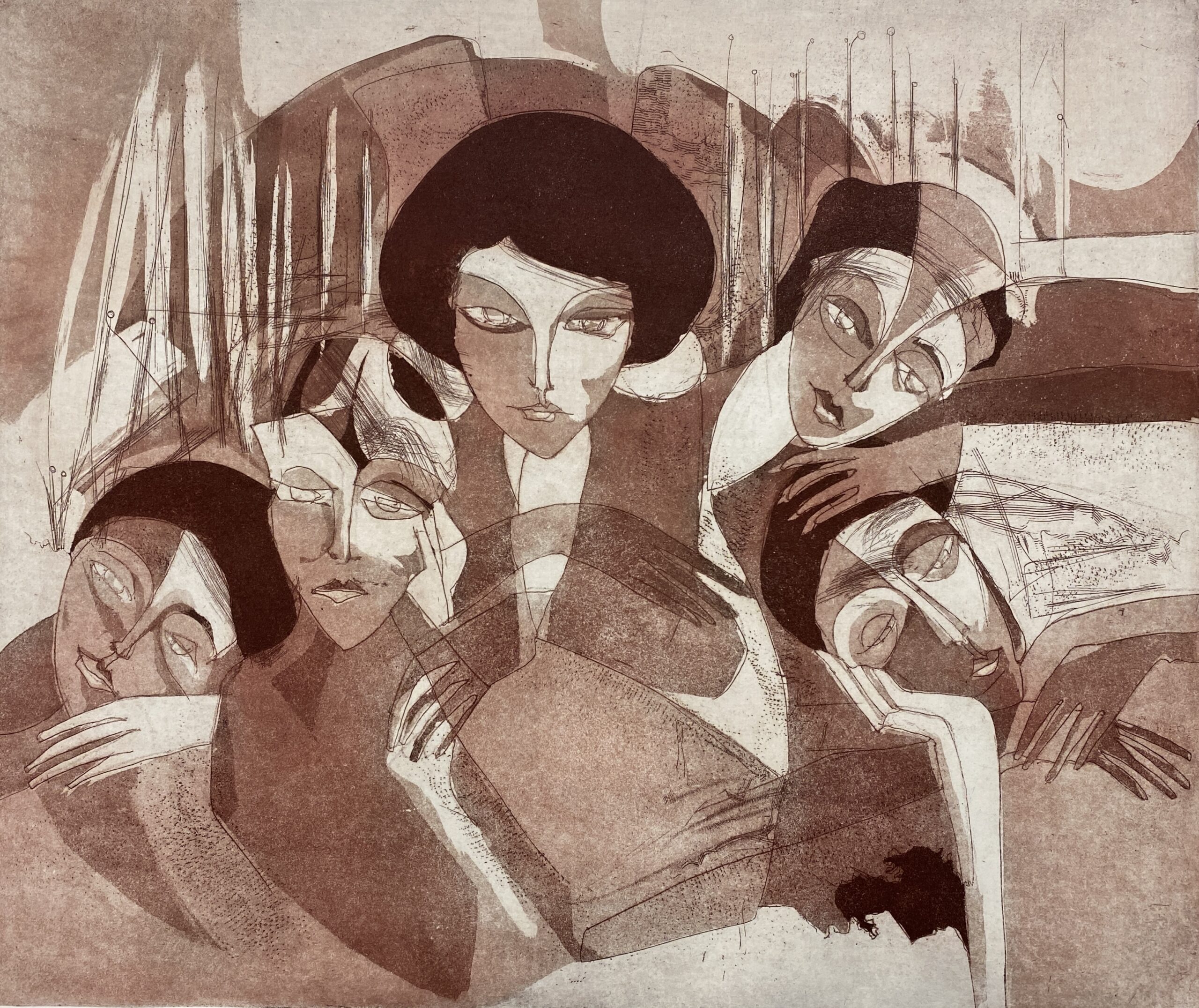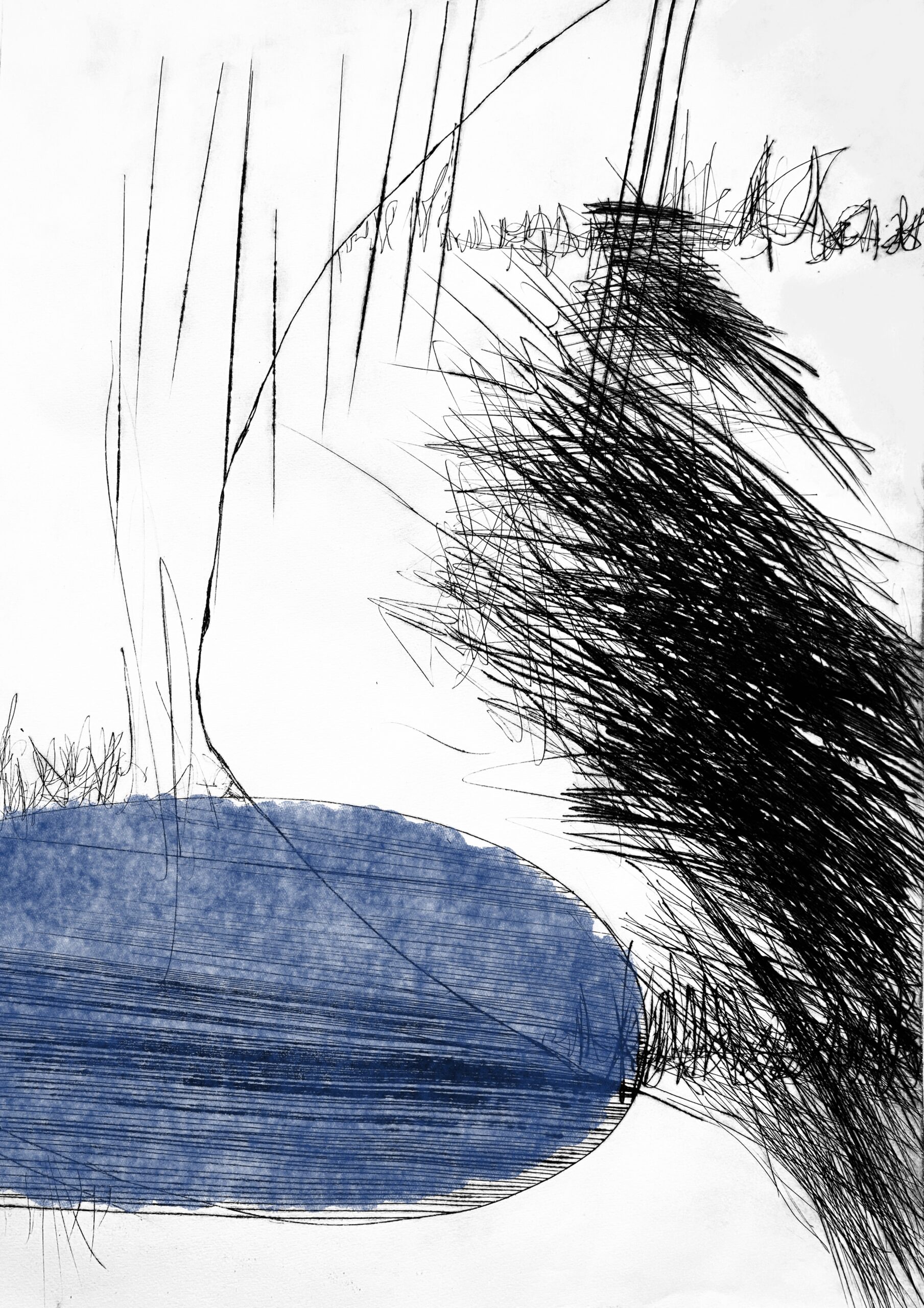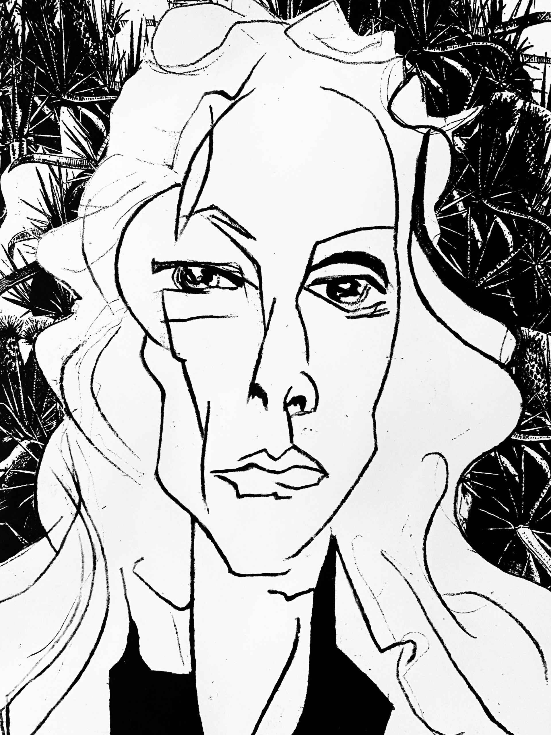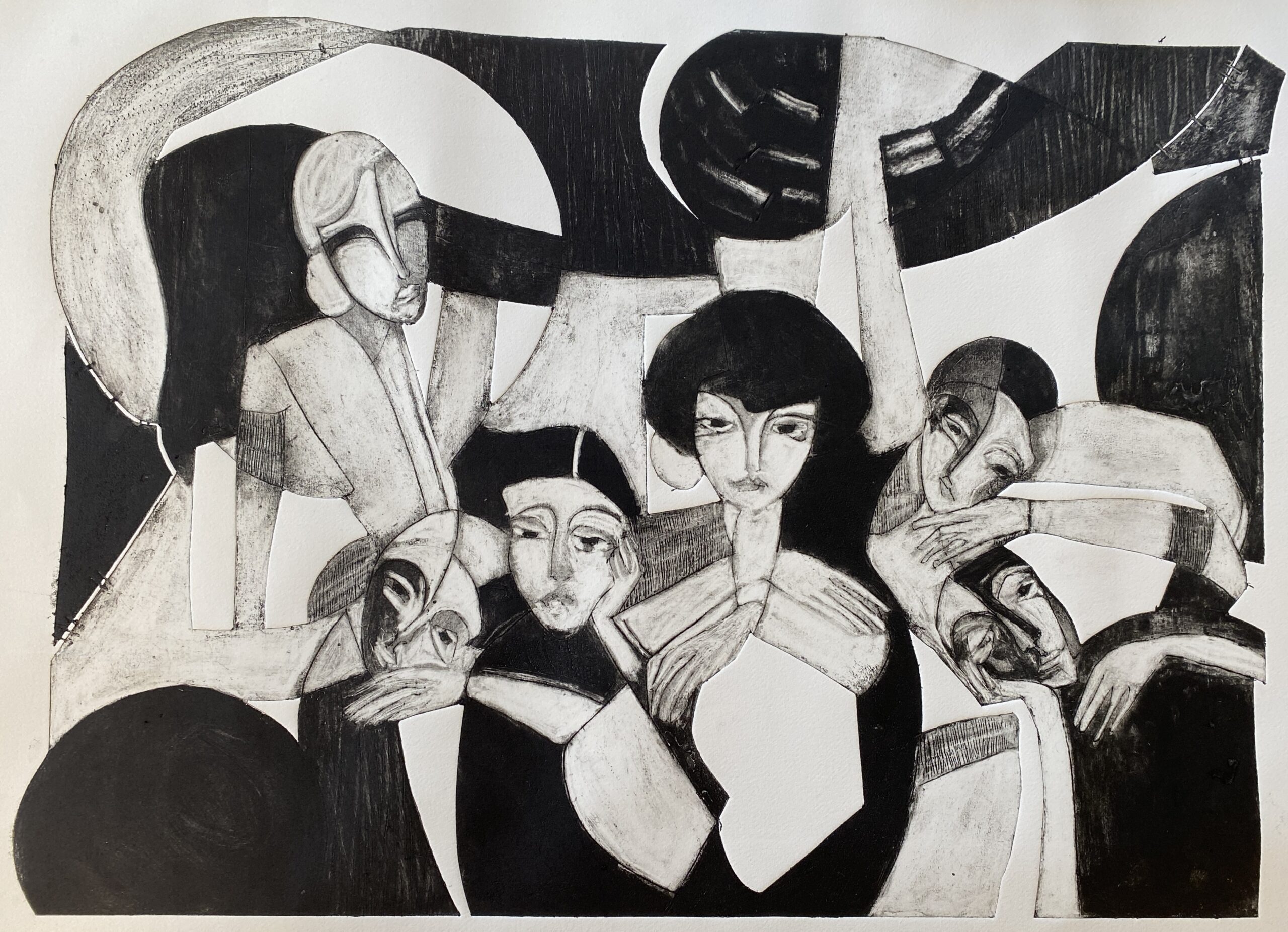 In der Druckgrafik wechseln sich kraftvolle Linien und Flächen in kontrastreichen dynamischen und erhabenen stillen Bildstellen ab. Die Technik transportiert die erzählten Geschichten der Charaktere in einer besonderen Formsprache.